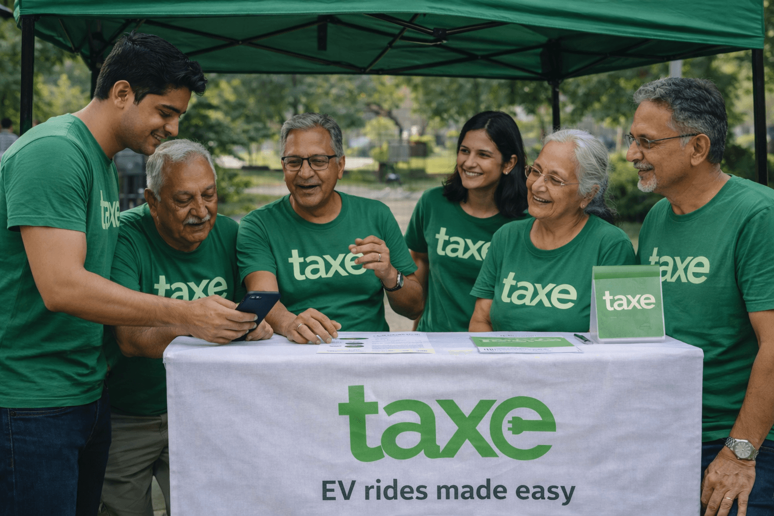 Taxe is a premium electric cab service built for comfort, safety, and reliability. Clean cars. Trained drivers. A smoother way to travel in the city.